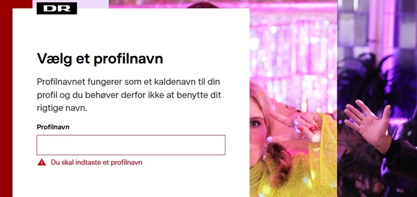 Nu har DR ændret teksten til ”Vælg et profilnavn – Profilnavnet fungerer som et kaldenavn til din profil og du behøver derfor ikke at benytte dit rigtige navn”.